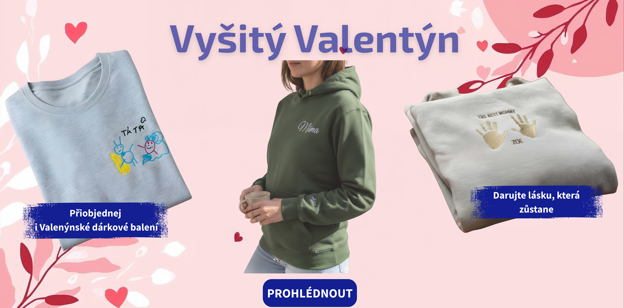 Co je na mém e-shopu nejvíce oblíbené? Polokošile pánská s folklorním motivem, čepice se jménem, mikina s výšivkou, vánoční baňka, vánoční baňka se jménem, vyšívané oblečení římské číslice, výšivky z kresby vašeho dítěte, výšivky z obrysu fotografie, nejlepší dárek pro muže - tričko s obrázkem dítěte